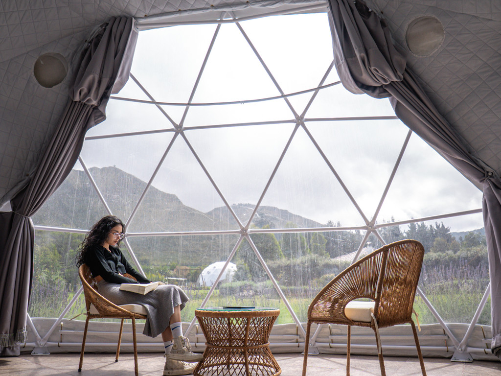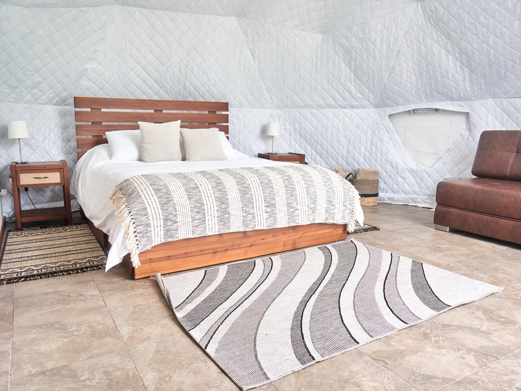 Book NowDomo de 28m2 con capacidad para 3 personas. Este domo tiene una cama queen (matrimonial) + un sofá cama de plaza y media muy confortable. Tiene un baño privado completo externo. La tarifa incluye desayuno continental.