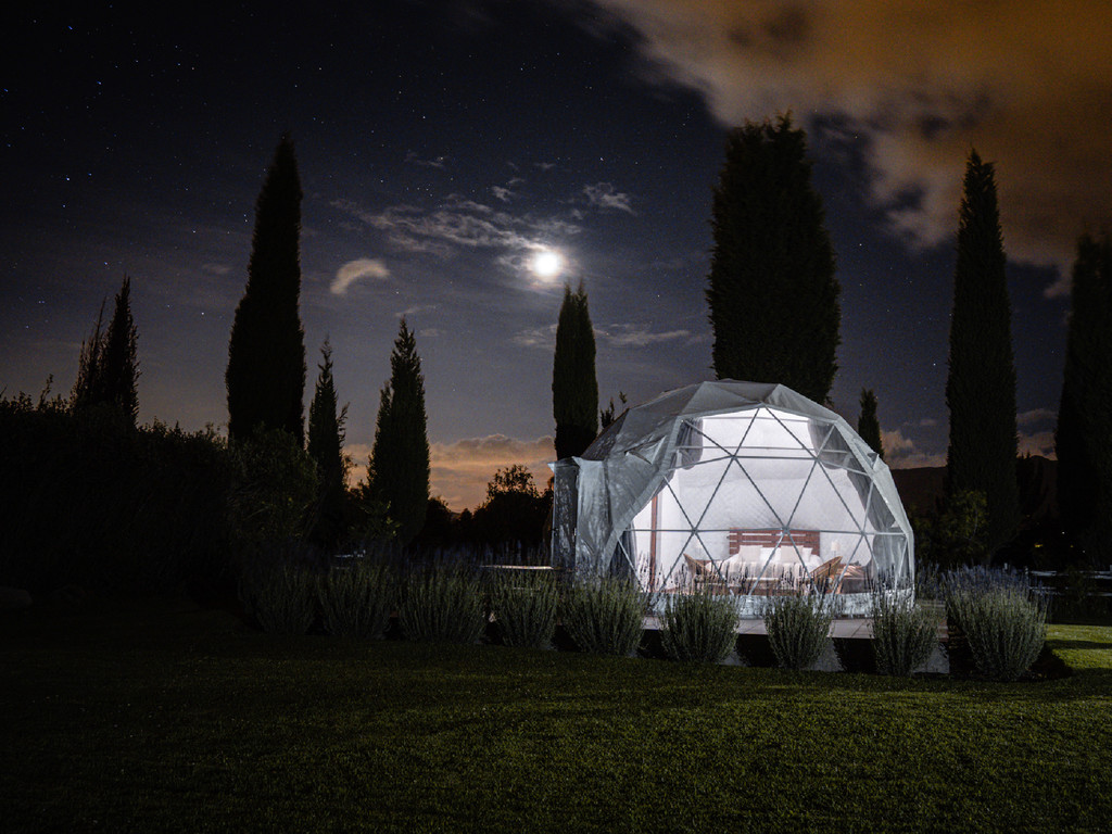 Domo de 28m2 con capacidad para 3 personas. Este domo tiene dos camas de plaza y media + un sofá cama de plaza y media muy confortable. Si desea se puede agregar un adicional de colchón de plaza y media con un costo adicional.Tiene un baño privado completo externo. La tarifa incluye desayuno continental.